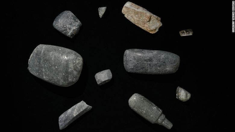 The platform would have been used for for rituals and the team found jade axes and other precious objects in its center, said Inomata.Axes excavated from the site, which date back to 1,000-700 BC. Other precious objects were also found.